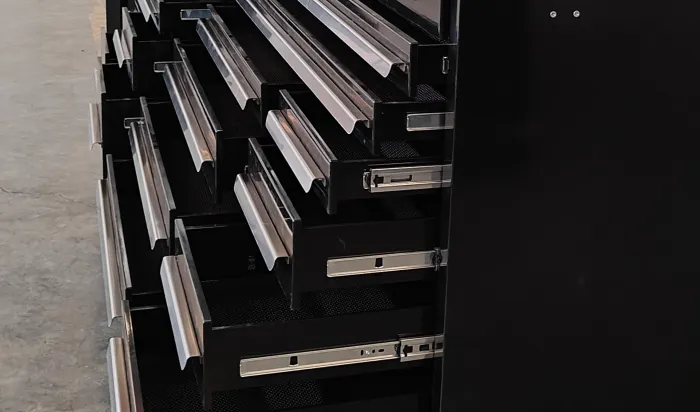 Tiché posúvacie koľajnice: Čierna multifunkčná skrinka nástrojov má vysoké tiché posúvacie koľajnice, s hladkým ťahovým pôsobením a silnou kapacitou ložiska.
