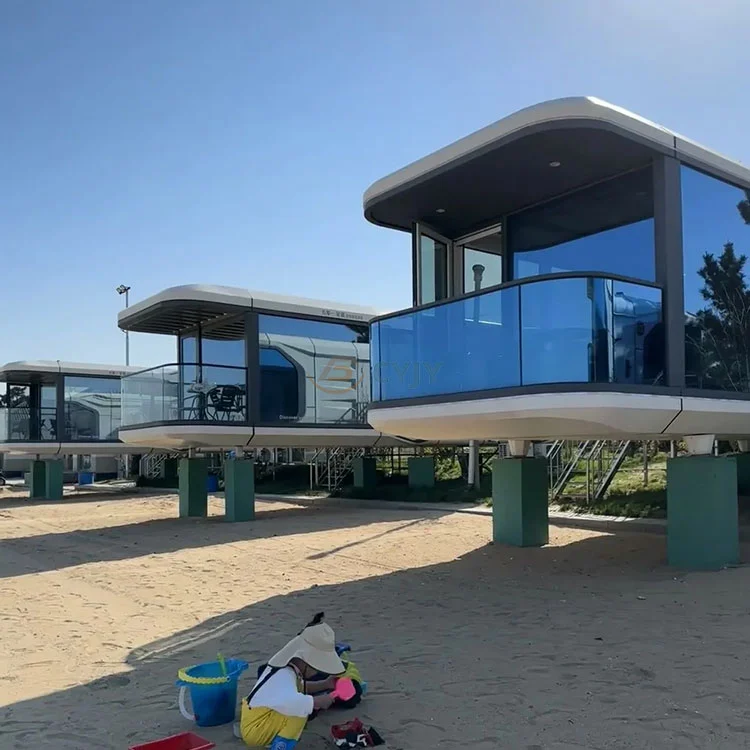 Návrh modulárneho domu Living Capsule kombinuje futuristické a praktické vlastnosti s hladkými čiarami a tvarom podobným vesmírnej kapsule, ktorá kombinuje zmysel pre technológiu so životným pohodlím. Hlavná konštrukcia domu s modulárnou živými kapsulami je vyrobená z galvanizovanej oceľovej dosky alebo z nehrdzavejúcej ocele 304 s vodotesnou vodou IP66, odolnou proti 12-stupňovému tajfúnu, zemetraseniu s 9 úrovňami a 1,66 kN/㎡ kapacity snehu a môže sa prispôsobiť extrémnemu podnebia. Vďaka modulárnemu dizajnu, materiálom ekologicky šetrných k životnému prostrediu a inteligentnej technológii, pretože základný, modulárny dom Living Capsule poskytuje efektívne, flexibilné a udržateľné riešenia pre núdzové, cestovný ruch, kancelárske a živé scenáre a je v budúcnosti reprezentatívnym produktom kompaktného životného priestoru.