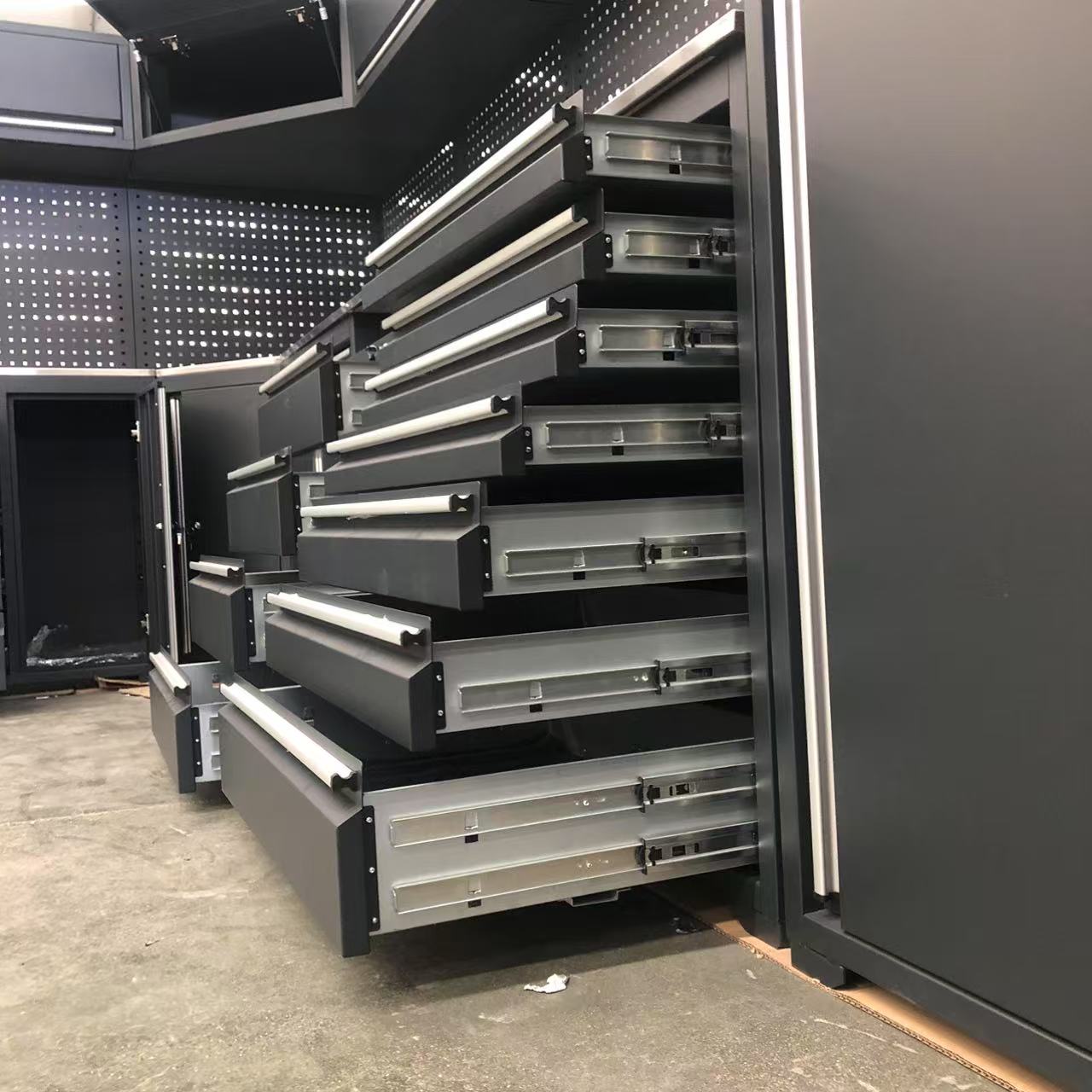 Multifunkčný ťažký nástroj pracovný stolík je vyrobený z oceľovej dosky valcovanej za studena s protiútokom na povrchu, ktorý je odolný voči korózii a odolný proti opotrebeniu a môže sa prispôsobiť vysokej vlhkosti alebo priemyselnému prostrediu. Multifunkčný ťažký nástroj Workbench poskytuje viacvrstvový klasifikovaný úložný priestor, podporuje správu oddielov nástrojov, príslušenstva a malých zariadení a zlepšuje efektívnosť práce. Multifunkčné ťažké pracovné stolové stoly sú vybavené tichými koľajnicami s plným rozšírením, ktoré pri úplnom načítaní podporujú hladké otvorenie a zatváranie, čím sa zlepšujú prevádzkový zážitok.