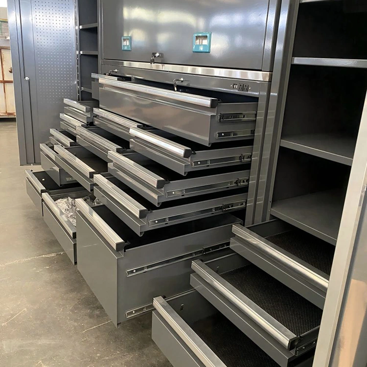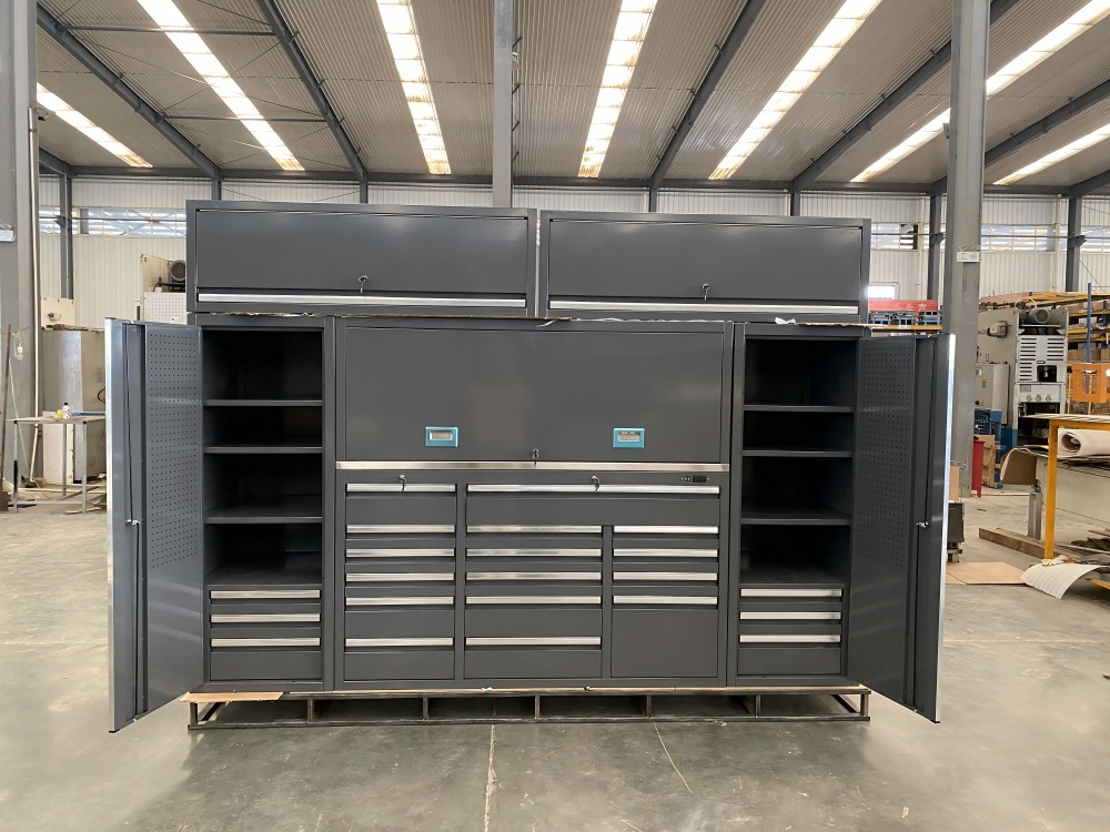 Nové dizajnérske garážové skrinky sú nové skrinky navrhnuté Cyjy pre našich zákazníkov. Hlavný rámec nových dizajnérskych garážových skriniek je vyrobený z 1,5 mm oceľovej dosky valcovanej za studena, s jednosmernou nosnou kapacitou 150 kg. Povrch je ošetrený elektrostatickým postrekovaním, čo zvyšuje odolnosť proti korózii o 40% a je vhodný pre vlhké prostredie.