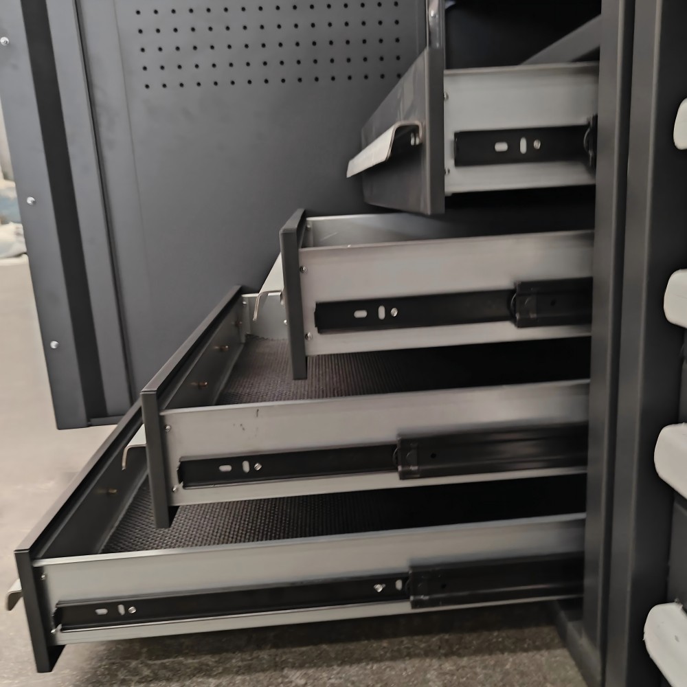 Flexibilná modulárna kombinácia dizajnu: Nová modulárna garážová skrinka podporuje jednotlivú skrinku a zostrih viacerých kabinetov a dá sa prispôsobiť pracovným stolom, zásuvkám, závesným doskám a ďalším príslušenstvom, aby sa prispôsobili rôznym rozložením priestoru. Silná škálovateľnosť: Nová modulárna garážová skrinka môže dosiahnuť horizontálne alebo vertikálne rozšírenie úložného priestoru pridaním modulov na splnenie budúcich vylepšení dopytu. Silný a odolný výber materiálového materiálu: Nová modulárna garážová skrinka za studena alebo hliníkový zliatinový ráme stabilita.Multi-funkcia Konfigurácia Skladovanie: Nová modulárna garážová skrinka Plne uzamknuté dvere skrinky a konštrukcia proti Tilt na ochranu cenných nástrojov alebo vybavenia Dizajn odolný voči prachu a vlhkosti, vhodný pre vlhké, zaprášené alebo vysokoteplotné prostredie (napríklad garáže a opravné workshopy)