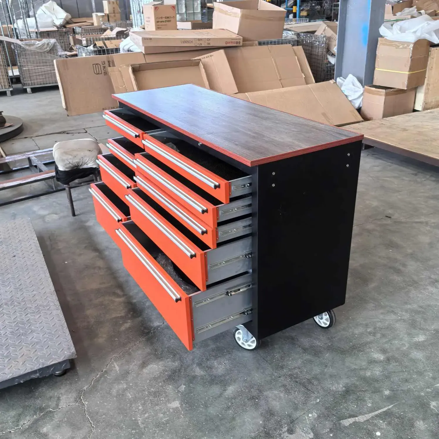 INástroje na opravu vozidla na opravu automobilov, musia mať pre automatické opravovne obchody. Postavené z tvrdej oceľovej ocele, odoláva opotrebovaniu a korózii. Viaceré zásuvky s rôznymi veľkosťami ponúkajú dostatok priestoru na úhľadné usporiadanie množstva nástrojov, od kľúčov po skrutkovače. Hladké valivé koliesky, z ktorých dva sú uzamykateľné, umožňujú bez námahy pohyb okolo podlahy obchodu, či už smerujete k výťahu automobilu alebo k pracovnému stolu. Jeho robustná zostava zvládne ťažko využívanie, čím zabezpečuje dlhodobú trvanlivosť v rušnom prostredí nastavenia automatického opravy.